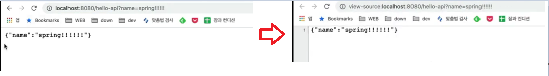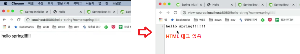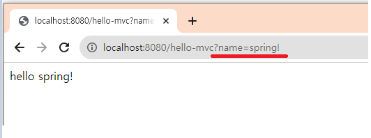 브라우저에서 name=spring! 입력