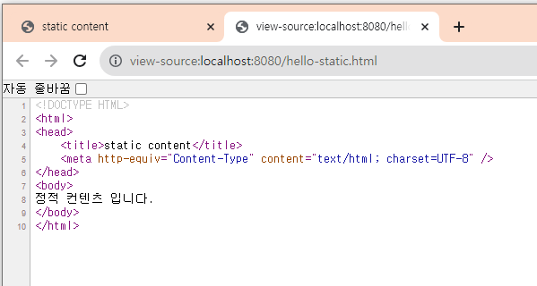 정적 컨텐츠에서는 변환 없이 그대로 넘겨주고, 템플릿 엔진에서는 변환 해서 넘겨 준다