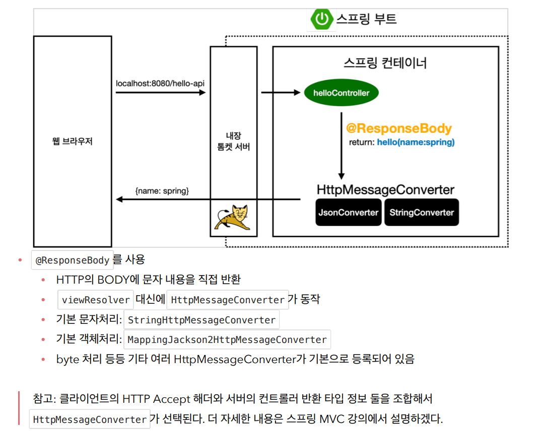 @ResponseBody : Http의 body부분에 데이터( "hello" + name; ) 를 직접 넣어주겠다는 의미