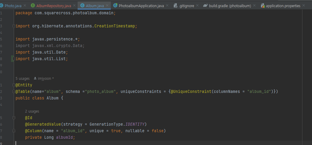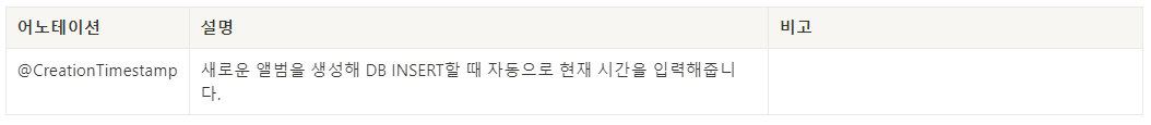 생성자 & Getter Setter 만들면 Album Table이 DB에 생성된다