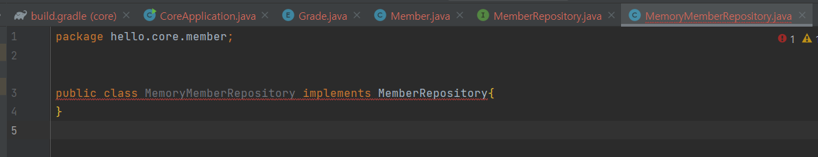 MemoryMemberRepository실제 할당하는 부분이 구현체를 의존하는 것이 문제