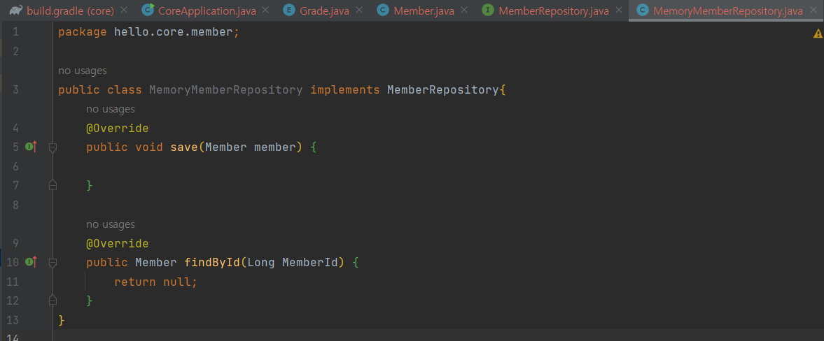 DB확정 안된 상태에서 MemoryMemberRepository만 만들어놓은 상태