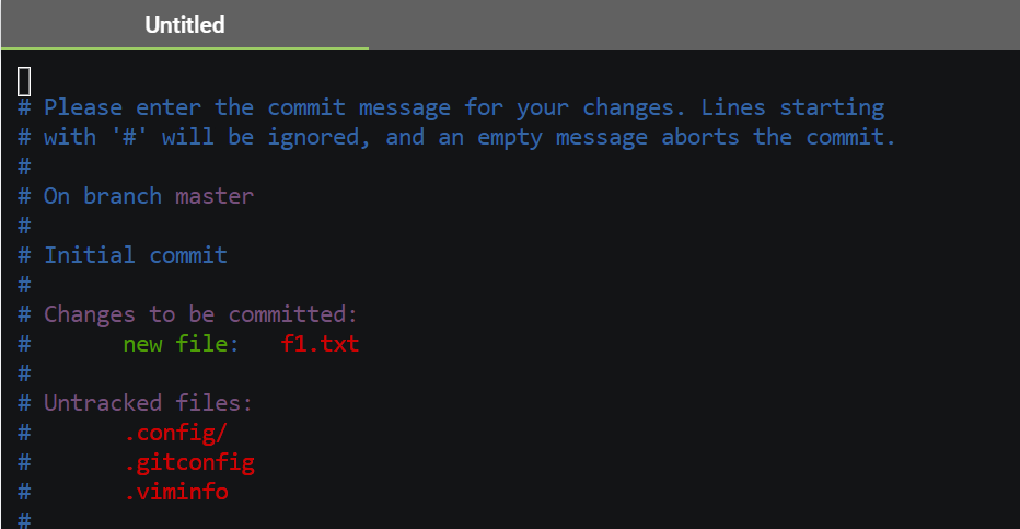 (f1.txt는 add했기때문에 commit대기 상태이며, f2.txt는 commit 대기 상태에 들어가 있지 않은 상태)