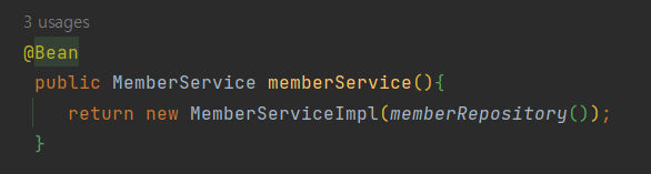 Key는 memberService, Value는 new MemberSeriviceImpl로 해서 스프링 컨테이너에 등록 되어