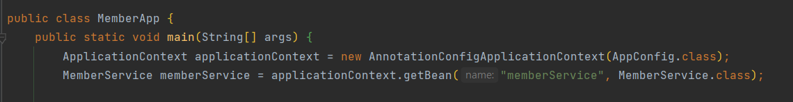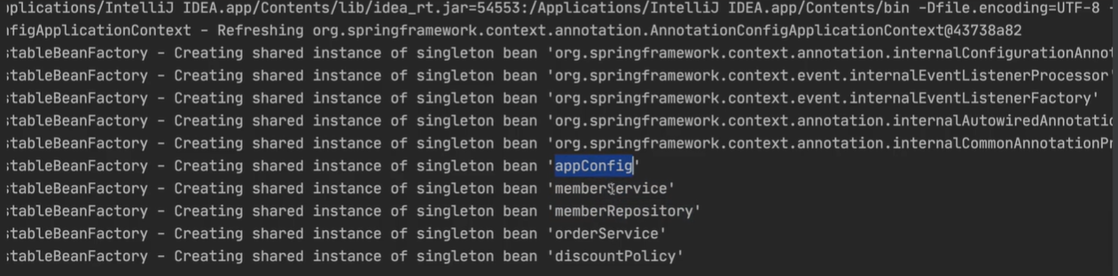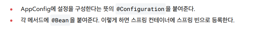 AppConfig에 있는 환경 설정 정보로 스프링이 스프링 컨테이너에 빈으로 등록한 생성된 객체를 넣어 관리 해준다