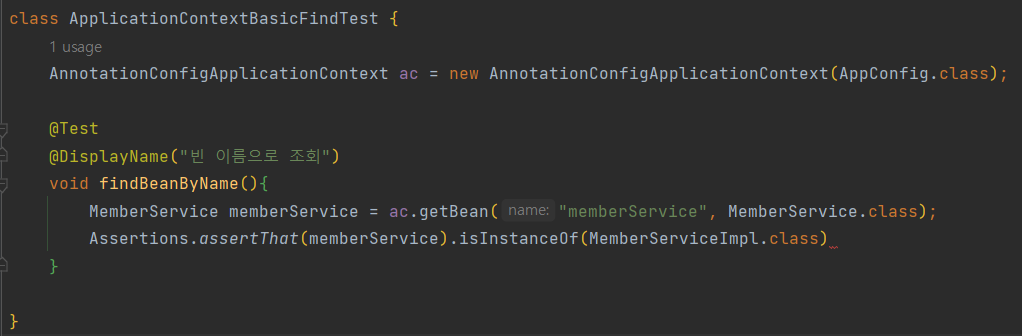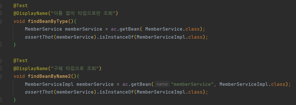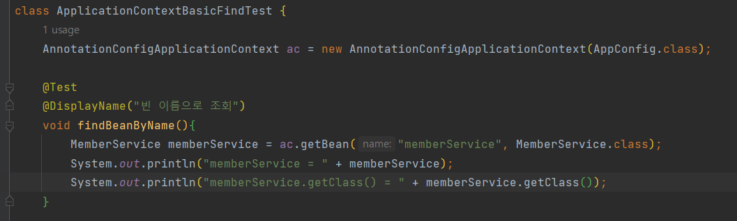 () -> ac.getBean("XXXXX", MemberService.class)로직을 실행하면