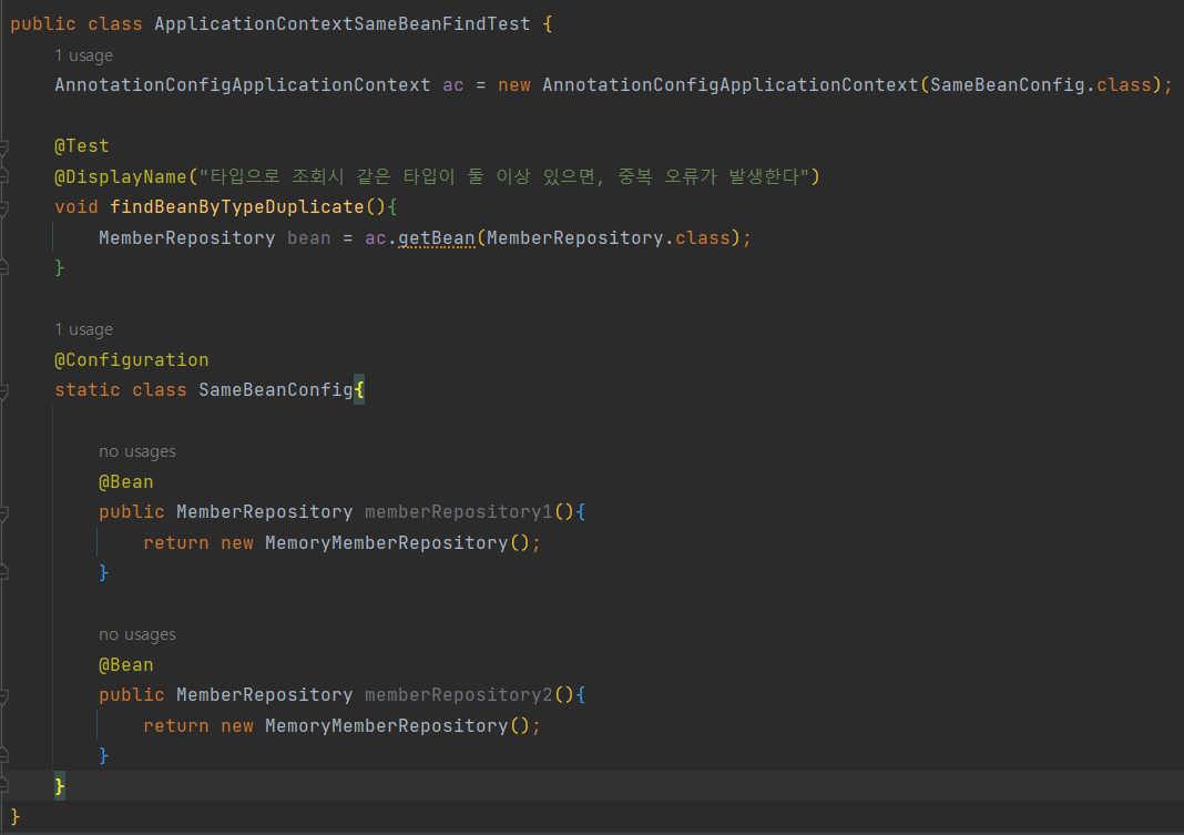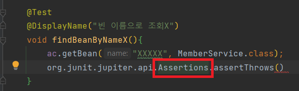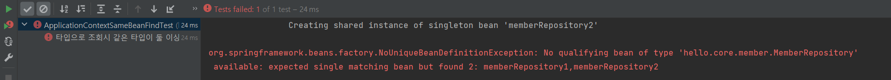 NoSuchBeanDefinitionException 예외가 터져야 성공 ! 안터지면 실패