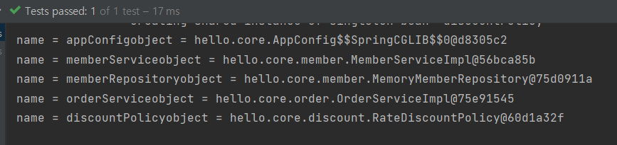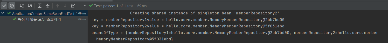스프링 컨테이너가 스프링 빈 2개만 등록