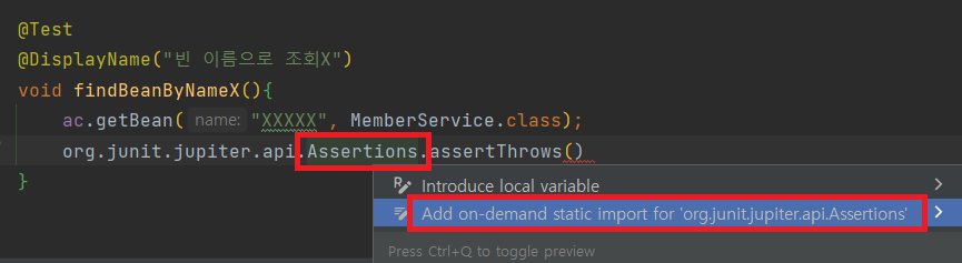 Assertions에서 Alt + Enter누르면 줄일 수 있음