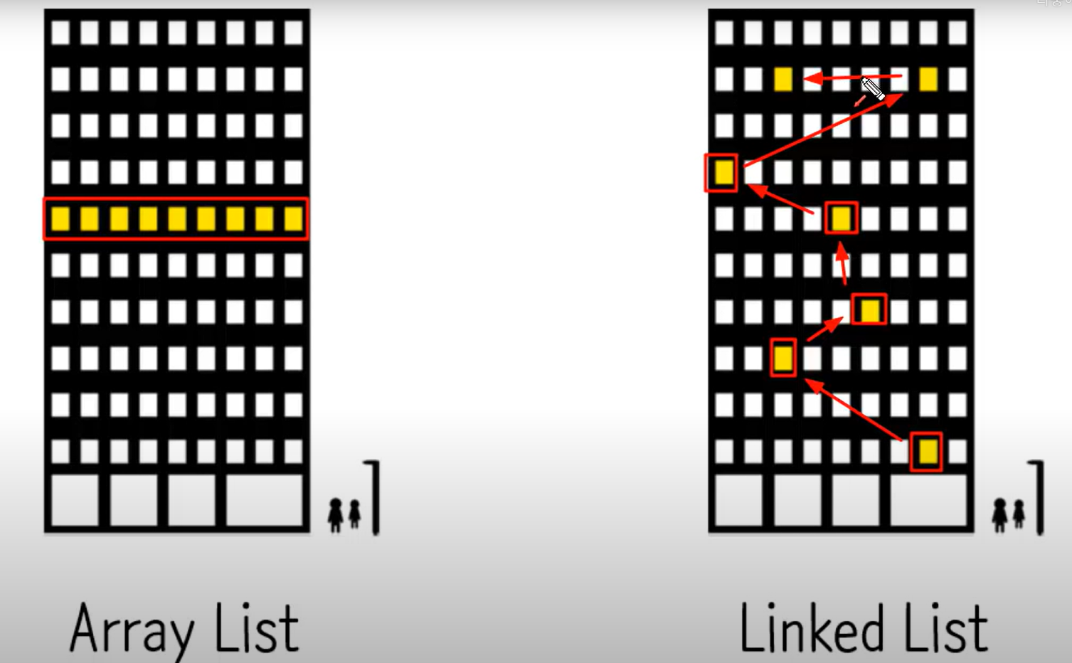 RAM(Random architecture Memory) 메모리에도 address가 있고, 각자의 위치에 데이터가 저장됨 각 주소에 접근할 때 걸리는 시간이 동일 메모리를 사용하는 특성이 다르다 LinkedList 구조 node : 마디, 교점 vertex: 정점, 꼭지점 연결과 연관되어 있는 개념 구조를 설명하기 위한 표현 node 안에 2개의 필드(변수)를 가지고 있다 data field: 저장되는 실제 값 link field: 다음 node가 무엇인가 저장 되어 있음 head : 첫번째 노드가 무엇인가를 의미하는 정보를 저장 첫번째 위치에 노드 추가 1. 노드를 생성 2. 새로 생성한 노드에 next값으로 현재 이 리스트의 첫번째 노드를 지정 3. 시작이 되는 node가 방금 생성한 node 데이터..