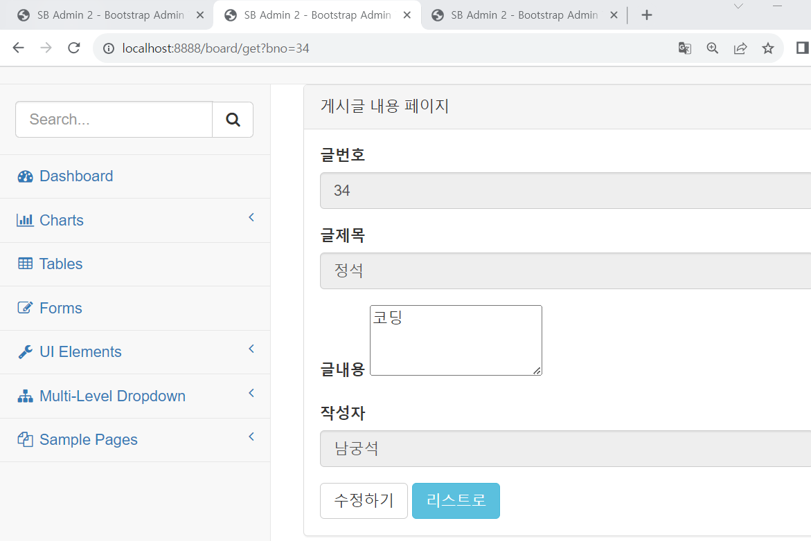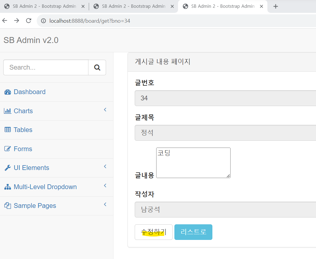 board/list페이지에 게시글을 클릭 ->수정하기 수정버튼-> 수정하기 페이지로 변경 -> 게시판에 수정된 내용 확인 가능